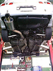 タイヤ交換時、ジャッキアップついで、いつものように車体下に潜り込み各部の点検。軽く浮き上がったサビを処理し、シャーシコート吹きかける。よく見聞きするフェンダーの錆はまだ全く心配ない様子。一応タイヤハウスや、錆発生源として有名なダクト部分周辺にも勢いよくシャーシコートを。顔を突っ込んで作業をしていたけど、ふと気が付けば、塗料が風に乗ってボディーに沿って流れて行く・・・・