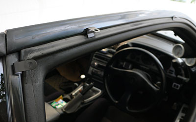 取付要領書によると、まずルーフバイザー本体を当ててみて穴位置をマーキングし、その場所にブラケットをつけるみたいです。でも前のを外した跡が残っているのでその場所に差し込むだけ。本当に差し込むだけで、ブラケット自体は固定などされていません。