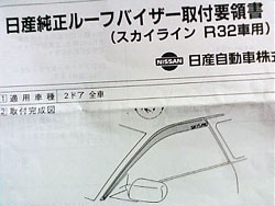 ルーフバイザーはディーラーオプションだったためか、取付要領書が付属しています。