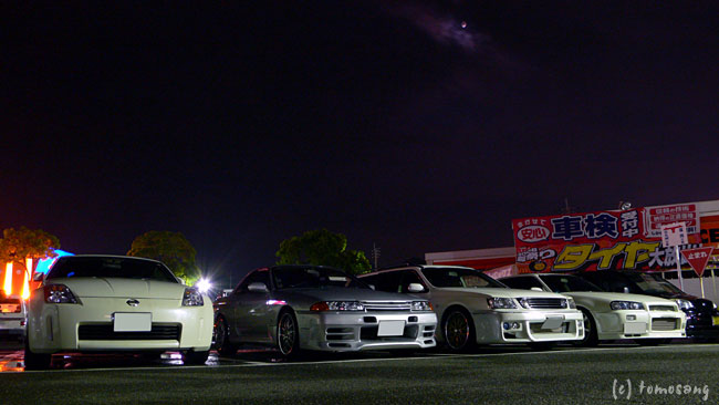 いつもは自分の32一台だけしか撮影しないので、複数台が縦に並んだ場合はどのように撮影すればいいのかと。改めてサムネイルを見てみると、並木と同じく少々車間を空けてとめてから撮影したほうがいいみたい。