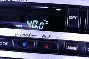 ここまで暑いと、エンジンを始動してアイドリングしているだけじゃ冷風は出てきませんね。