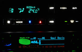 久しぶりの充電ドライブ。ライトのスイッチを入れると、内気循環切替ボタンのLEDが点灯していない。