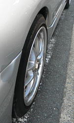 オフセットがミリ単位で注文できるホイールなので、スペーサーなんか使わなくてもツラに来るサイズを購入可能なんです。しかしちょっとした手違いでフロントのみ少し奥に入ってます。よって5mmのスペーサーを使ってツライチに出してあります。車検のことを考えるとスペーサーでツラを出す方が何かと便利。でも、リアも法改正前はそのままでOKだったんだけどな~