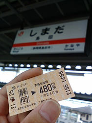 駅の空港行きバス停に到着。係員が「高速道路が工事渋滞していてバスの空港到着が遅れるかも」と言う。それは困る!ということで、案内係の提案で電車を使い島田まで。