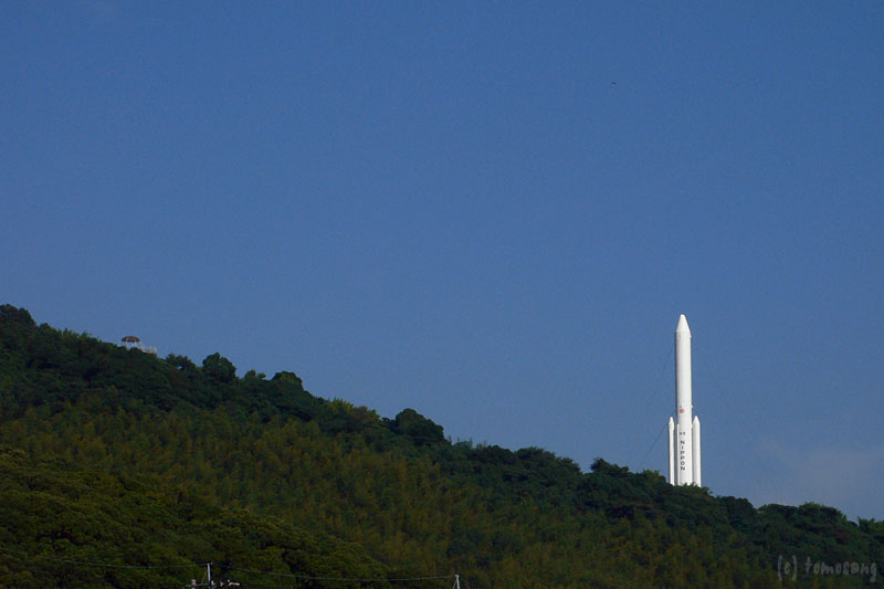 途中、山の上にロケットが立っていた。この近くから、種子島行きのフェリーが出てたような記憶が。
