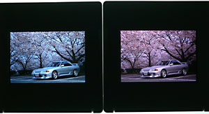 確かにデジの画像よりはポジのほうがクリアだけど、デジカメが新しくなってそこそこの画質で撮れているから。スキャン→補正という作業をしてまで、さらに載せるほどでもないかと。基本は車のサイトなんだし、おそらくそこまで細かく見てる人なんていないだろう。こんなことなら初めからデジ一眼買っておけば良かったのかなと、また思い始めた。