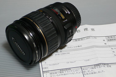 「九重”夢”大吊橋 - 阿蘇 part 5」に”レンズ不具合で再オーバーホール”と書いていた私のレンズ28- 135 IS USM。先月末?に再点検終了して戻ってきました。
