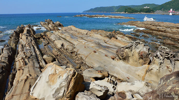 前日に寄り、薄暗い中見物したものの、どうせだからと再度寄ることにした。風と波による奇岩の造形美。土佐清水市竜串「竜串海岸」