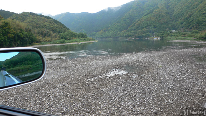 給油した中村市街から20分もかからなかったような。こんなに近いとは思わなかった。橋脚が青いせいか、いまいち景観に溶け込んでいないように感じるのは自分だけだろうか。橋上は狭く、離合は不可能ですが、ハマーが普通に走れるくらいの幅はあります。