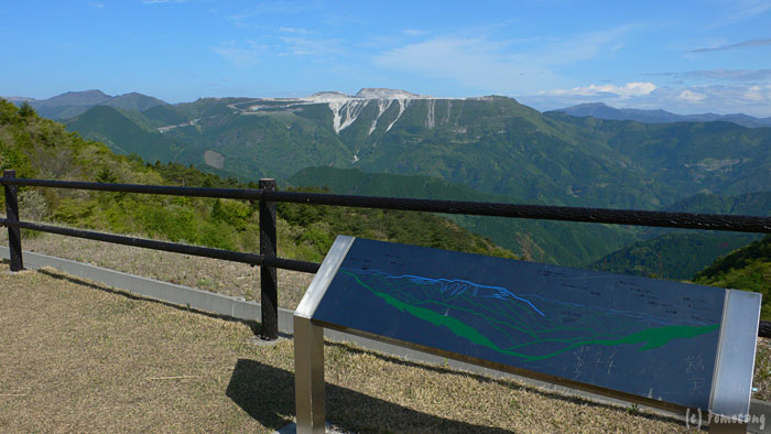 なぜか削られているお山。この方角に四国カルストがあるらしいが、どこだかさっぱりわからない。石鎚山も見えるらしいが、これまたどれだかさっぱりわからない。