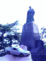 坂本龍馬の銅像。見事に逆光で上手く撮れなかった。よって画像は加工してます。この像を綺麗に撮影したければ午前中の訪問をオススメする。