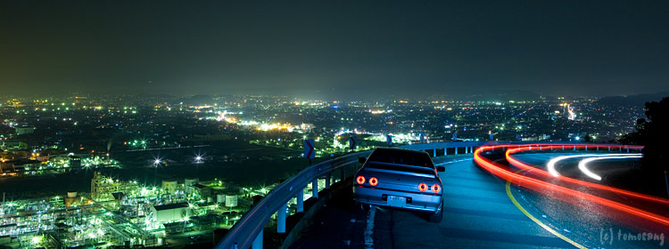 32を入れて撮っておかないと!と思いながら走っていると、鑑賞ポイント発見。でも先客が多くて止めれなかった。しょうがないから他のポイントを探して少し下ったところで路肩に止めて撮影開始。最初に見つけたポイントの方が、角度的に背後へ夜景の光りが沢山入って綺麗だった。空くのを待ってる時間なんて無かったのでしょうがない。そして撮影したのが一番上の一枚目。