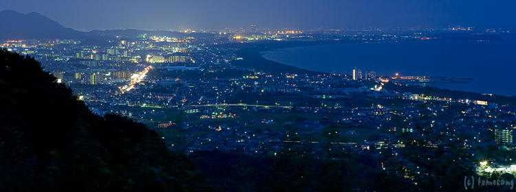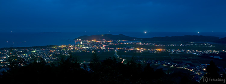 自然遊歩道を走破して、結局展望所からの眺めが一番だと確認出来たので、早めにやって来てスタンバイ。待機中に夜景も見えてきたので撮影してみた。