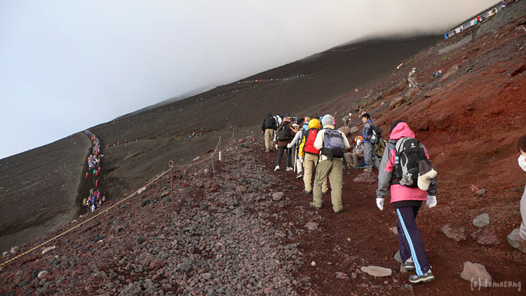 ですから登山道も下山道も大渋滞ということに。 奥の人の列が見えますでしょうか?