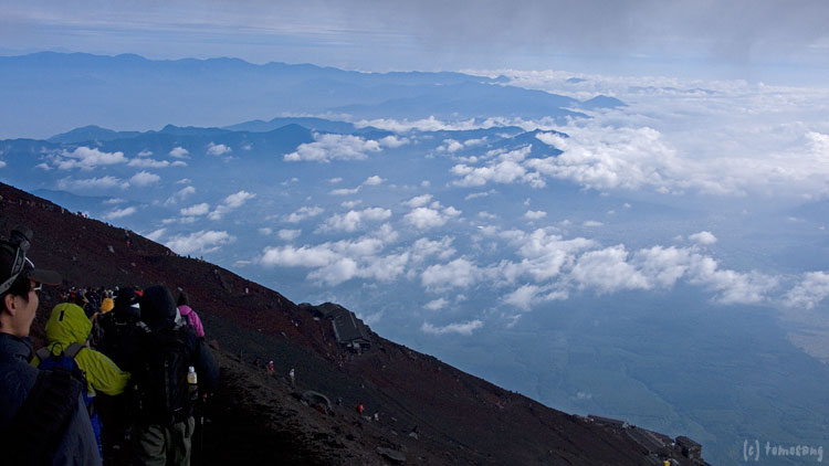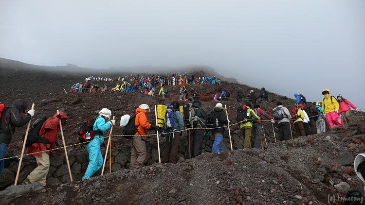 この時間帯に富士山に居る人達というのは、そのほとんどがご来光を目的としています。日が昇るその瞬間、人の動きが止まり東の空に集中。ある程度落ち着いたら、また一斉に動き出します。