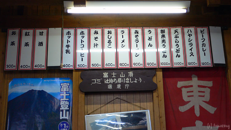 うどんを食べましたが・・・ゆで麺に醤油をかけてお湯を注いだような、下界なら「金返せ~!」と投げ返したくなるようなものなんですが、こういう状況なら多少美味しく感じてしまう(笑)向かいに座っていた女性二人組がみそラーメンを注文してましたけど、出てきたものは間違いなくサッポロ一番みそラーメンだと思います。あの麺のちぢれ具合といい、スープの色と七味といい・・・原価100円程が、山頂なら900円。