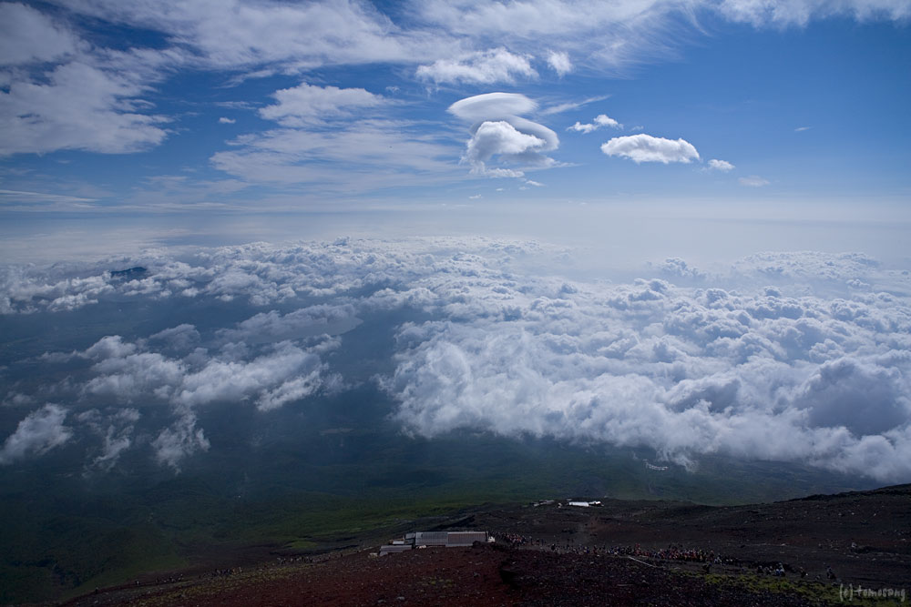 登山道脇にはくたばった人達(高山病だと思う)が横になっていたり、袋を片手に「オウェ~!」って苦しんでいたり。幸い自分は全く平気だった。それに、渋滞のおかげで疲れなど全く感じることなく山頂まで。