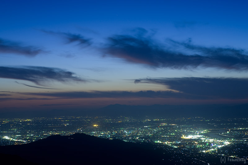久留米市にあるグライダー山から、筑後平野の夜景を眺めてみる。