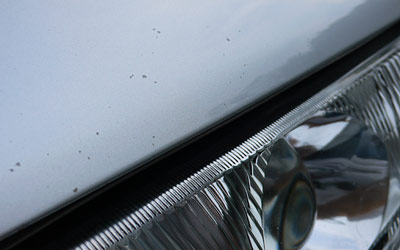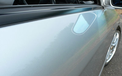 塗装が痛んだ状態のドア。写り込みがモヤっとしていて、ブツブツが出ています。