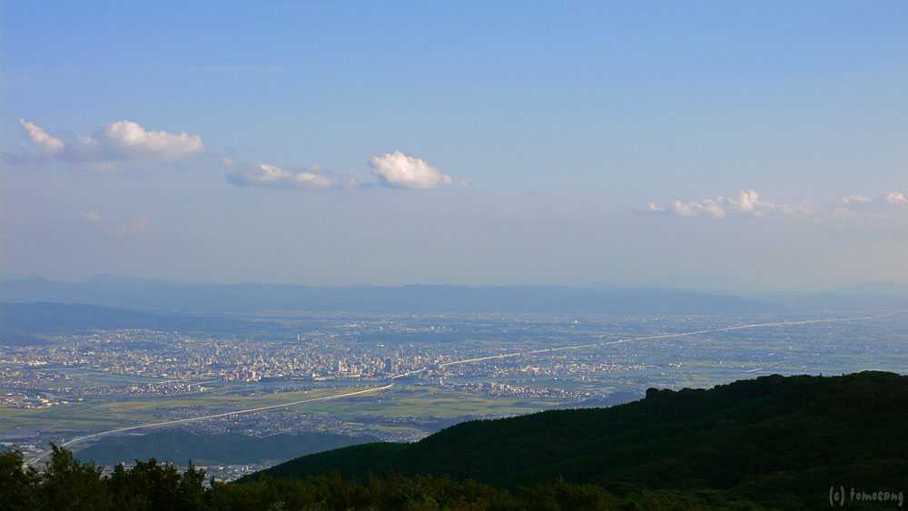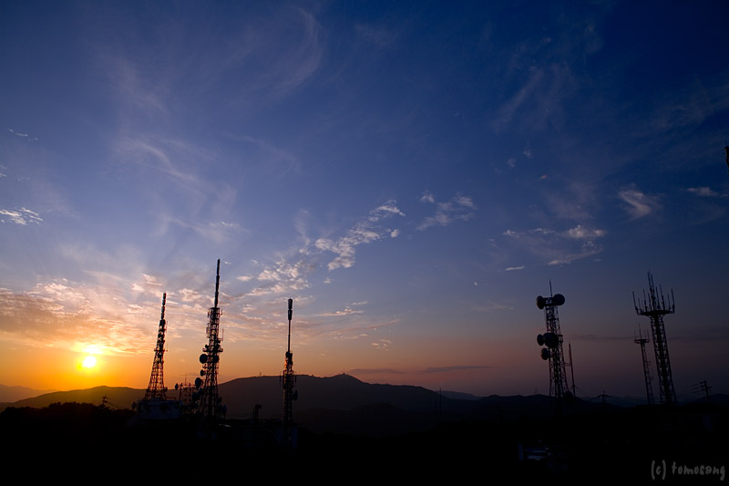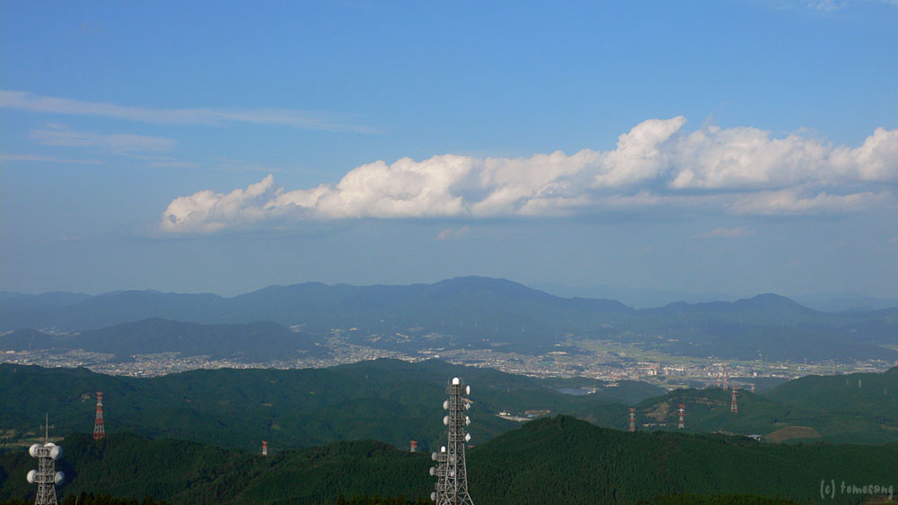 離合困難な狭い林道をひたすら走る。距離にして約10km、テレビの中継局に辿り着いたら舗装路は終わり。車を下り、カメラ機材をかかえて自然遊歩道を少し歩くと展望台が現れた。