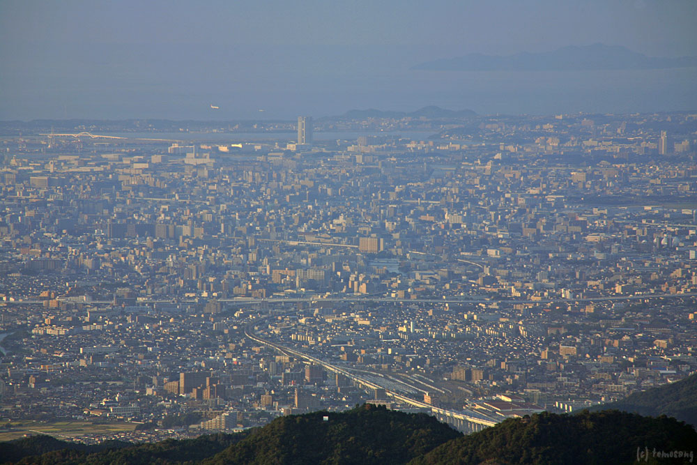 奥に志賀島、そして博多湾から福岡空港、その奥に立花山。