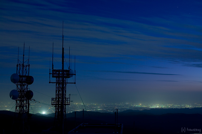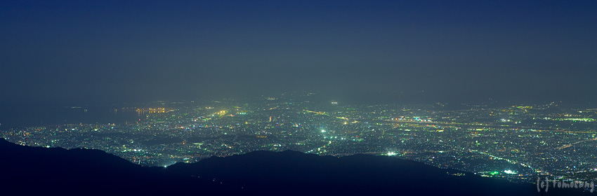 こういう山頂からスケール感のある夜景を眺めるには、空気が澄んでいないと綺麗じゃないですね。