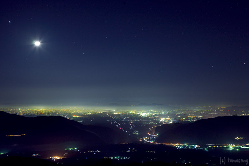 途中、草千里展望所で車を止め、熊本市方向の夜景を撮影してみたり。