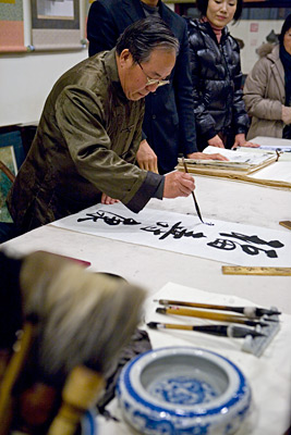 建物内の撮影は禁止でしたが、このおっさんの撮影はOKらしい。検索して他の人がアップしている写真を見ると、周りのスタッフだけは同一人物ですが、字を書いているおっさんは何名か存在するみたいですね(笑)