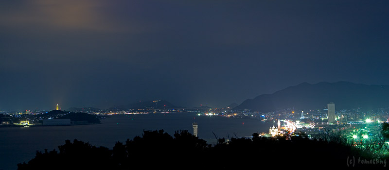 【手向山公園 東側からの夜景】のほうが開けて入るけど、見えるのは一方向。