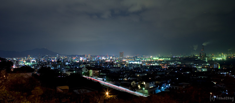 高速の高架を抜けて坂を登り始めると助手席の窓越しに小倉の夜景が一望。