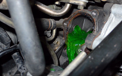 しかし、今度はサーモスタットが外れない。固着しているようなので、プライヤーで引くと外れて、その途端中からLLCがドバドバ・ジャバジャバ・・・・