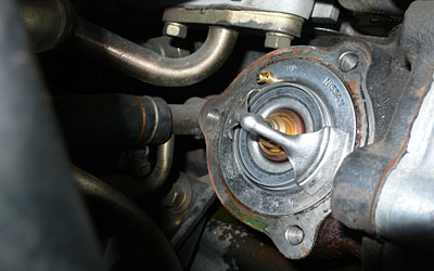 ハウジングを外すとサーモスタットがこんにちは。