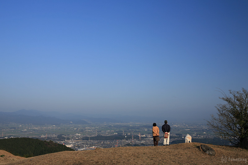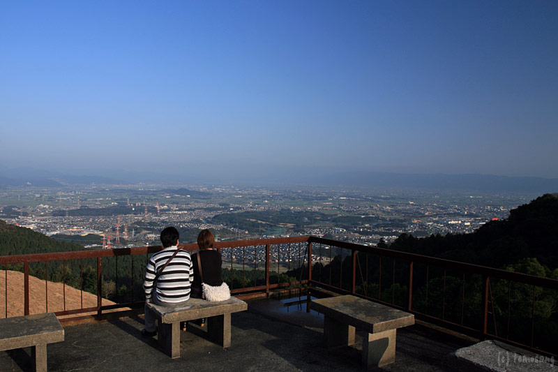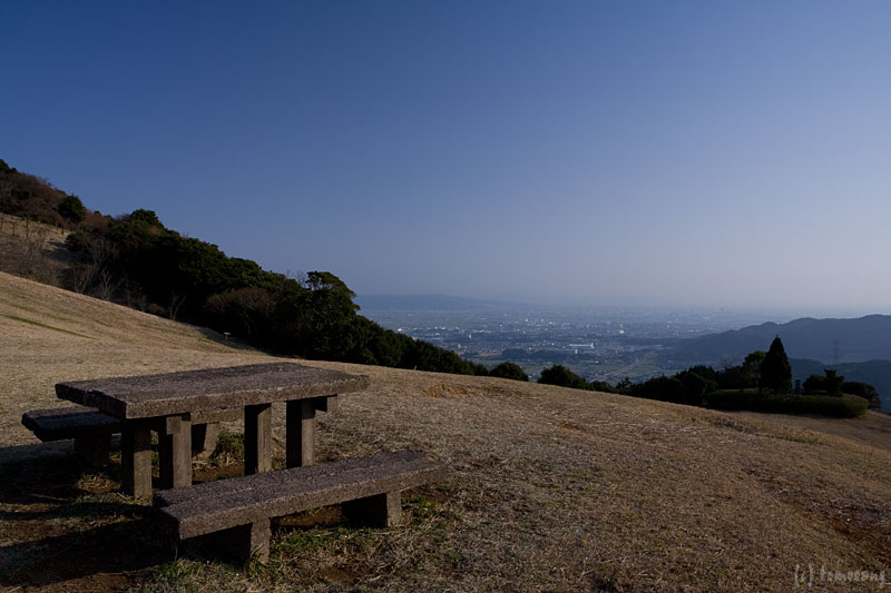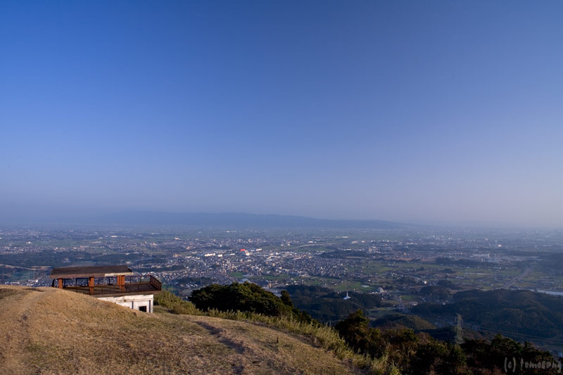 草スキー場を突っ切り、山頂へ出ると左右に展望台があります。左側展望台からは遠くに福岡市街(空港周辺)が山の間から、目の前に筑紫野~基山の街並みが見えます。