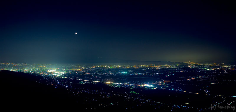【耳納連山・ハンググライダー発進基地からの夜景】の続き。