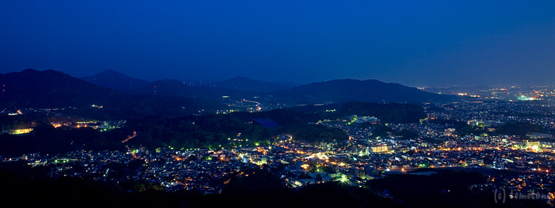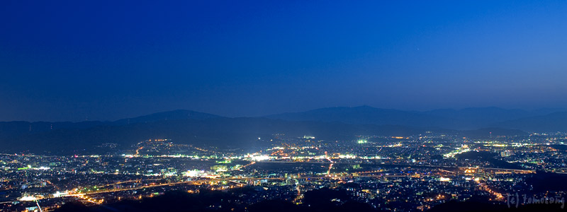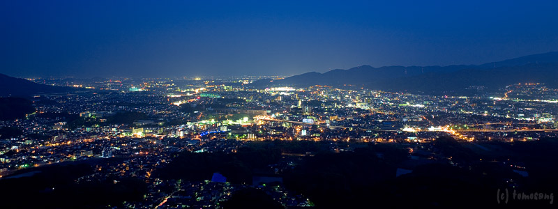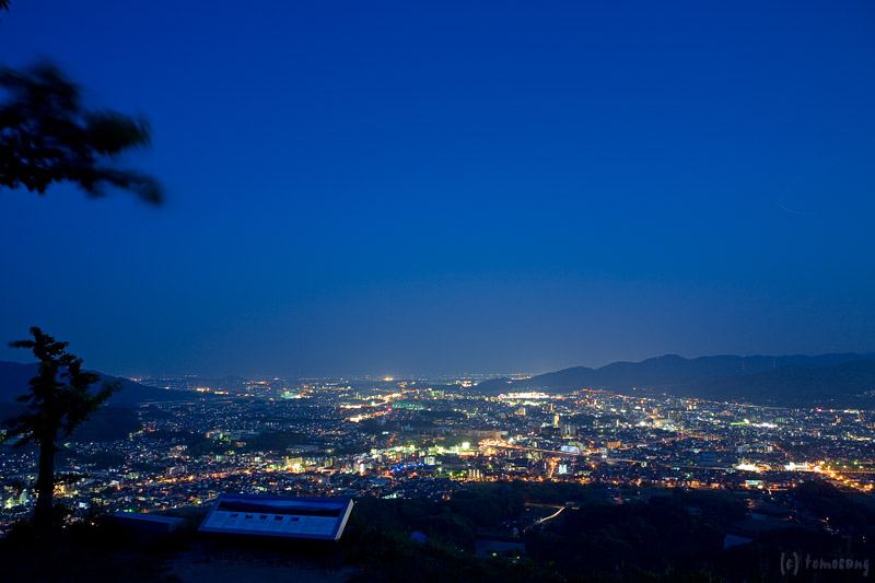 テーブルベンチに座って夜景を眺めるとこんな感じ。