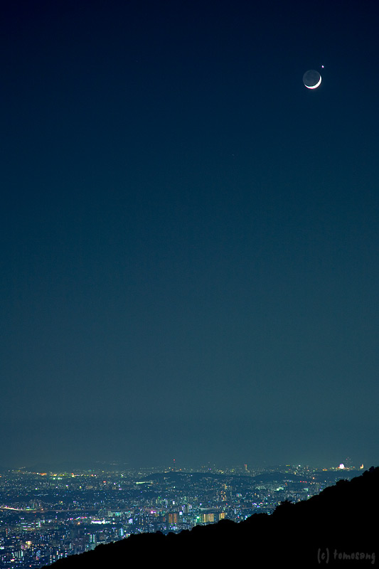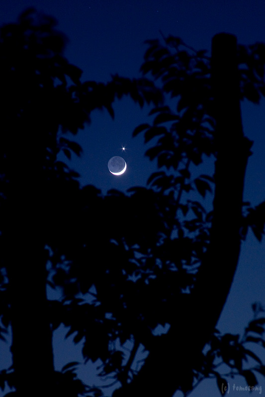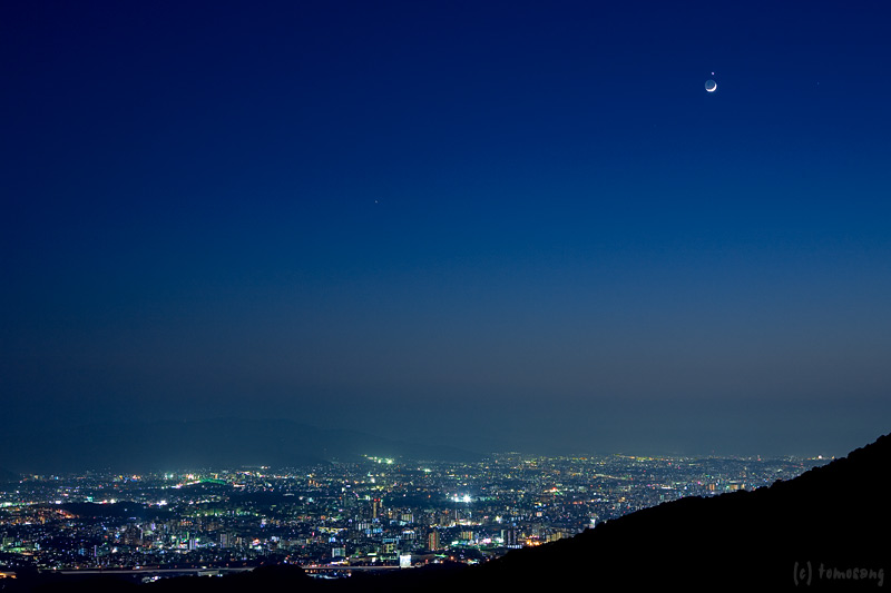 一枚撮影して後ろを振り返ると、三日月が出ていた。そしてその上に輝く宵の明星。