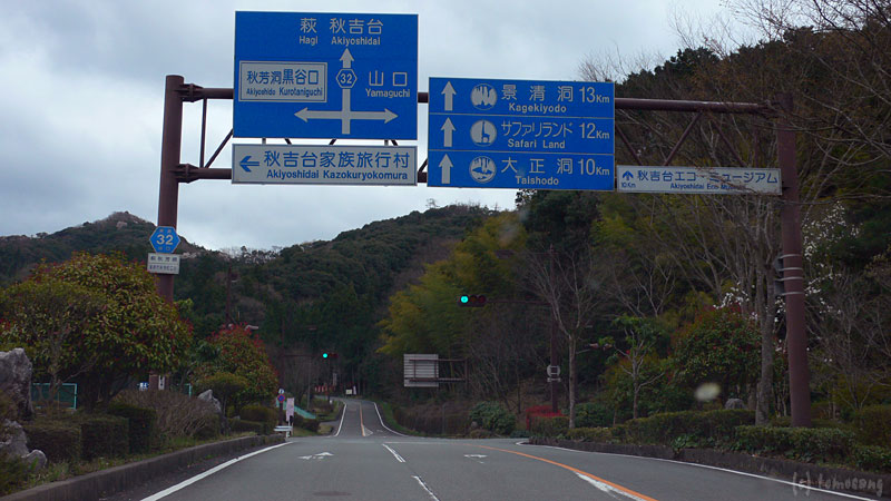 秋吉台の中を走る道は山口県の県道32号になっている。