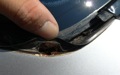 ひょっとして、モールが縮んでクリップとの間に隙間が開いた状態で放置していると、そこから雨水が入って同じ様に錆が発生する可能性もあるということか。過去にディーラーの整備士からは「その心配は無い」と何度も言われているけど、こんなのを見ててしまうと・・・