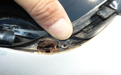 「サビチェンジャー」を塗り、穴をパテで埋め、シーラーを塗ってクリップを取り付ける。
