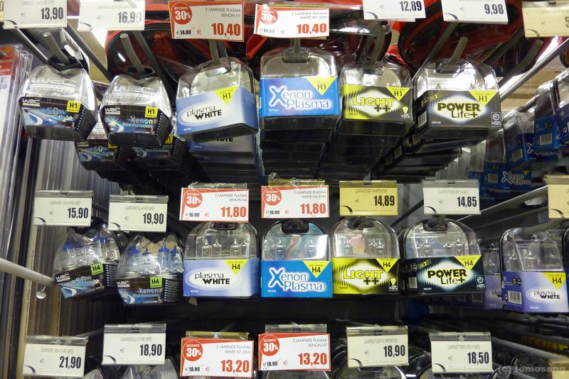カー用品が安い。イタリアまで来てワイパーとヘッドライトバルブを買っている変なヤツでした。