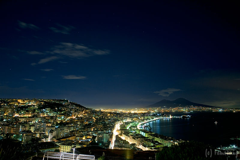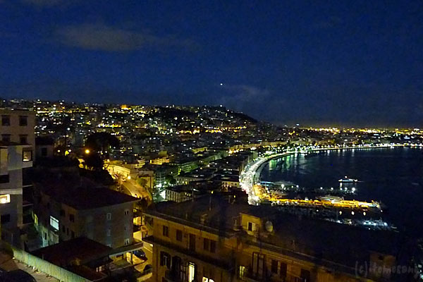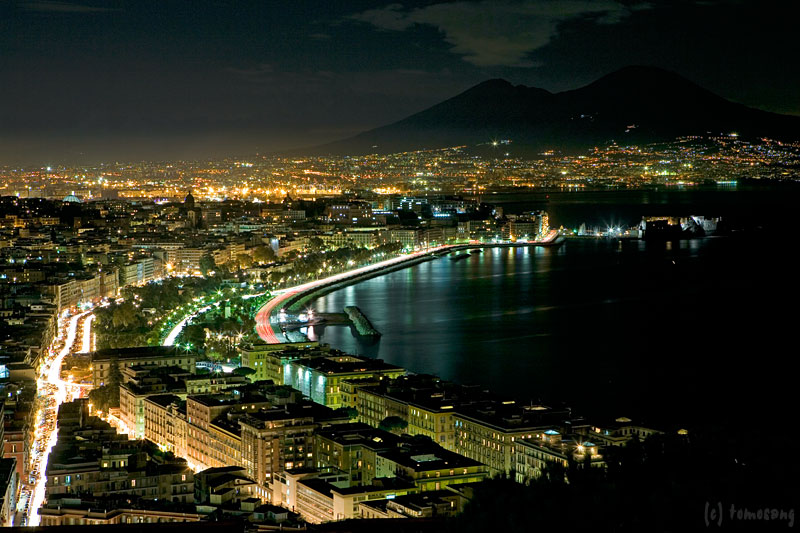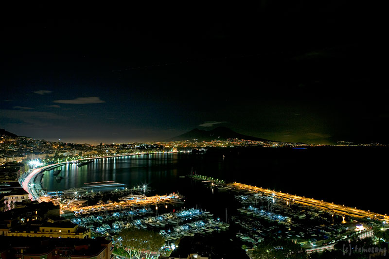 夜景サイトで紹介されている広場発見。行きに歩きながらコンデジで撮影した場所から少し逸れた場所だった。さすがにヴェスヴィオ山は埋もれていたので、レベル調整して浮き上がらせています。