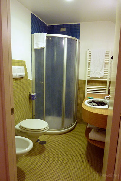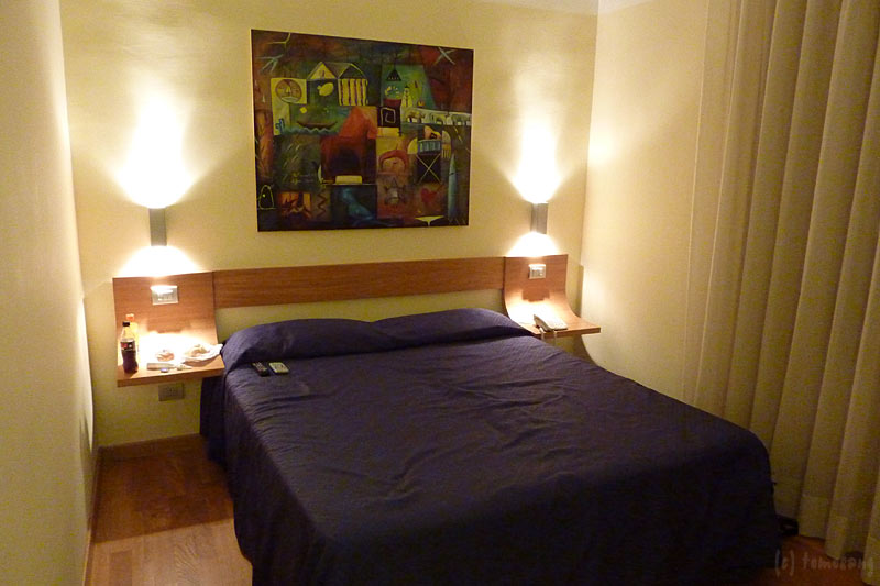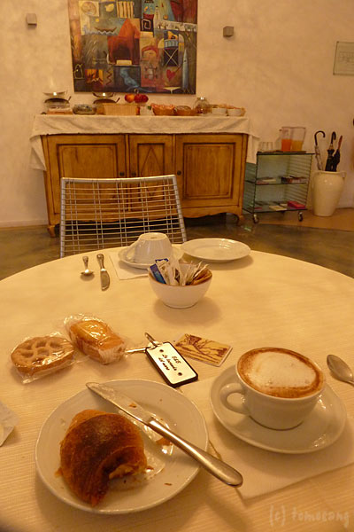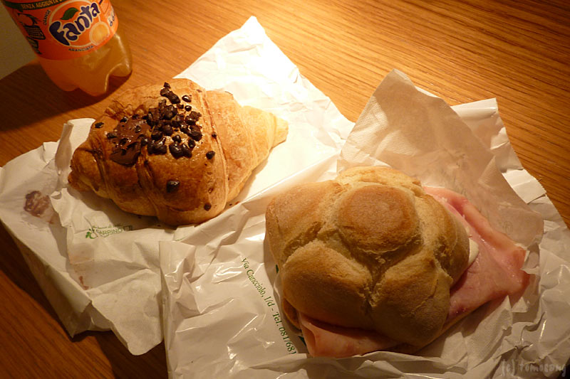 サイドテーブルに載っているのはさっきバールで買ったパン。今回の旅行中、チョコチップクロワッサンは欠かせないアイテムになっていた。