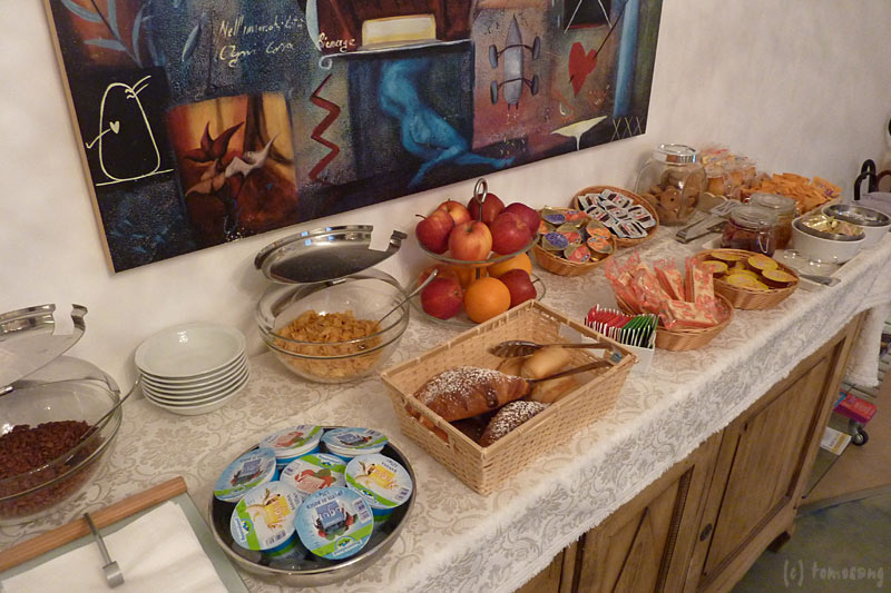 朝食を食べる場所というのがレセプションテーブルの前なんだけど、まだ自分一人だけしかいないから自然とホテルスタッフの男性と会話が始まってしまう。私は寝ぼけ顔でボ~っとしながら食べてただけなんだけど、男性スタッフが話しかけてくる。「日本から来たの?こっちで働いてるの?昨日はどこにいたの?今日はどこに行くの?列車は何時?それならそこの駅から15分くらいで移動できるから心配ないよ。」