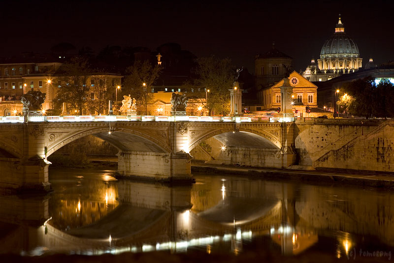 サンタンジェロ橋からヴィットリオ・エマヌエーレ2世橋と奥にサン・ピエトロ大聖堂。