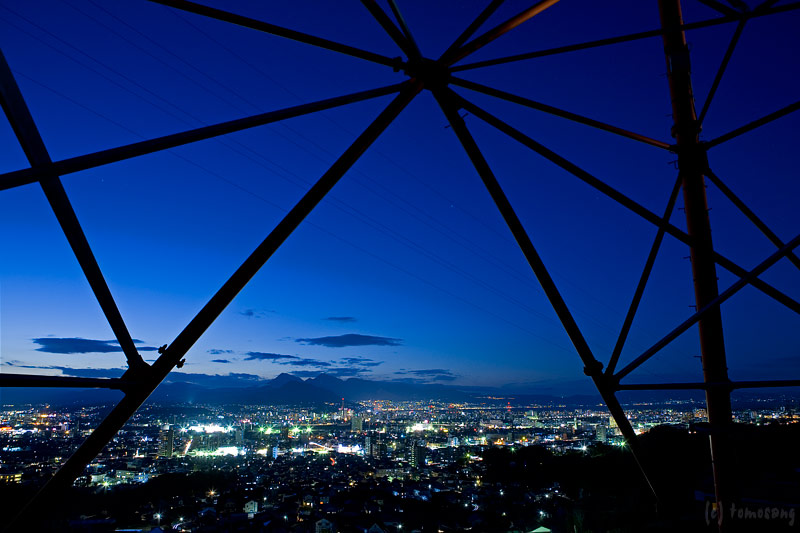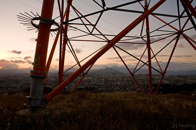 鉄塔の下、高圧線がジリジリいう真下で夜景を眺める。