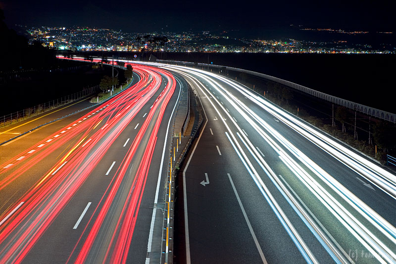 大分市から別府市へ向かう時、視線の先に見える別府市街の夜景が美しい。