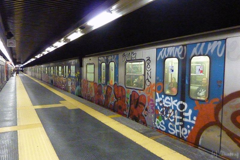 メトロ車両A線(画像一枚目)は比較的綺麗だが、B線は落書きだらけ。