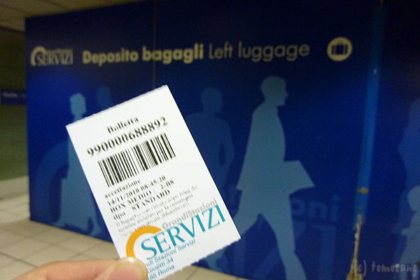当初の計画では荷物をホテルに預けてローマ観光。最後に荷物を受け取り、テルミニ駅からバスで空港へ向かう予定にしていた。しかし、このホテルに荷物を預けて行くのは心配になったので、テルミニ駅にある手荷物預かり所に預けることにした。