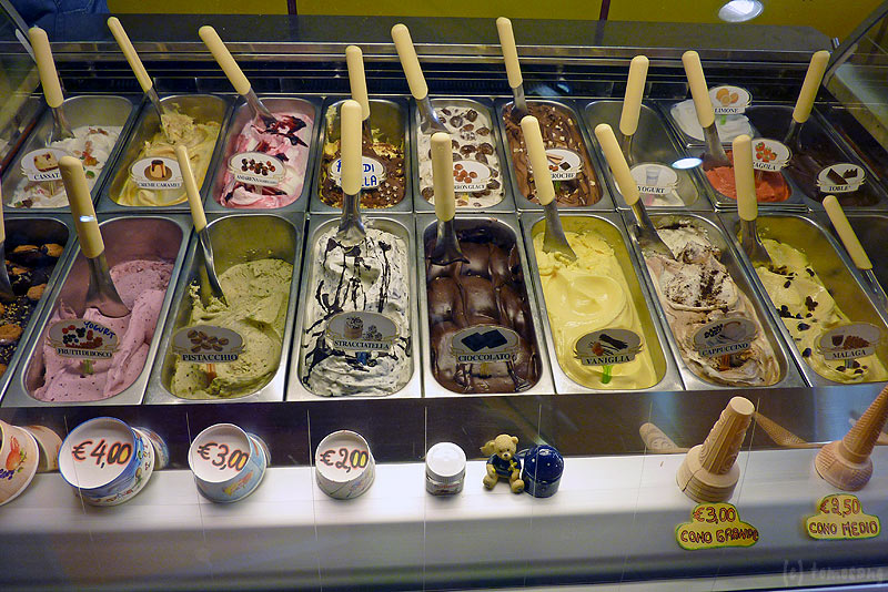 路地を抜ける途中、ジェラテリアを見つけ一休憩。