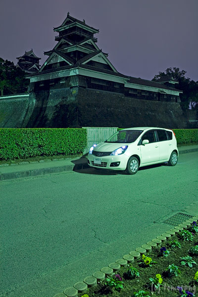 到着は2時過ぎ。さすがにライトアップの照明も消えていた。街灯の光が少し当たっていたので、バルブ撮影すれば写るだろうと撮影開始。